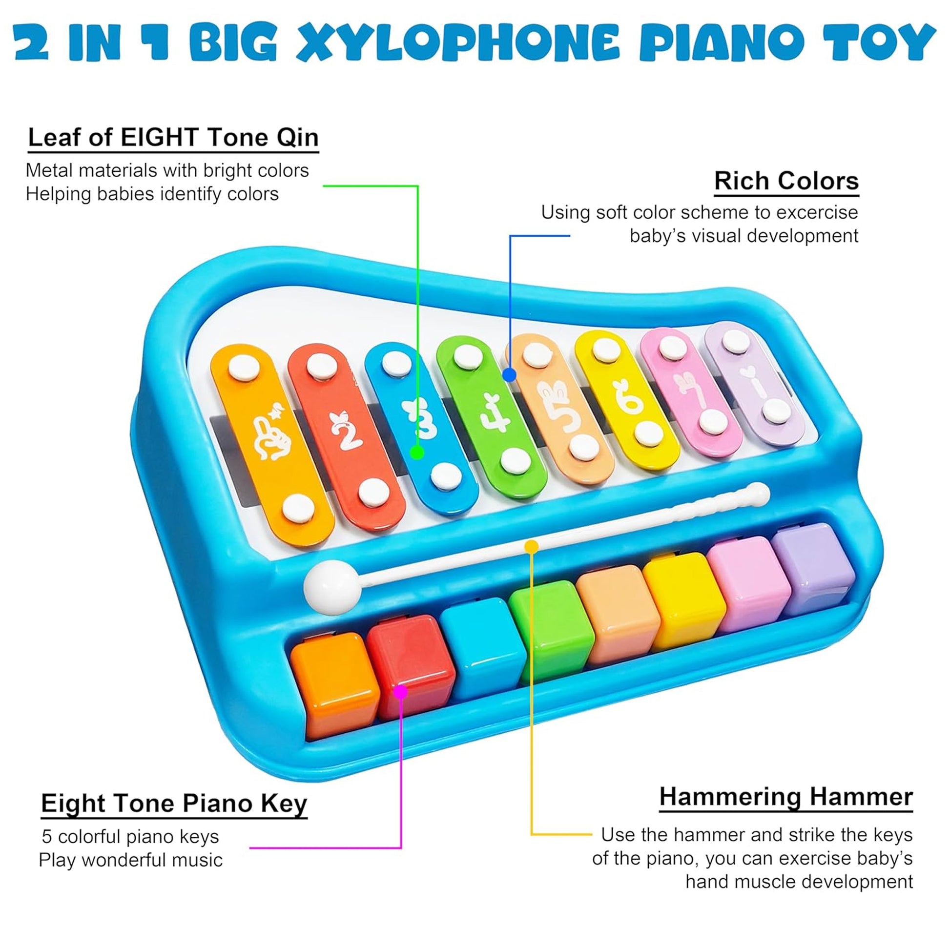 Toybharat 2 in 1 Musical Xylophone & Piano Toy for Kid | 8 Pin Toy | Interactive Toys | Musical Toy