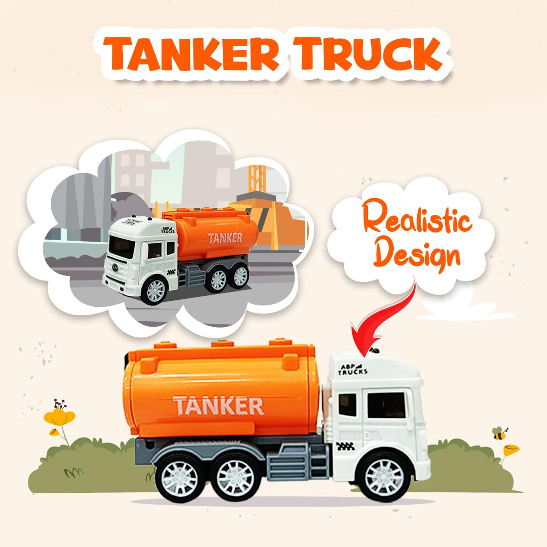 SET OF TOY TRUCKS (Pack of 4): An Awesome Choice for Kids aged 2, 3, 4, and older! This extraordinary group of push-and-go toy trucks includes 4 fun options: a Garbage Truck from ToyBharat, a Recycling Truck, a Crane Truck, and a Tanker Truck