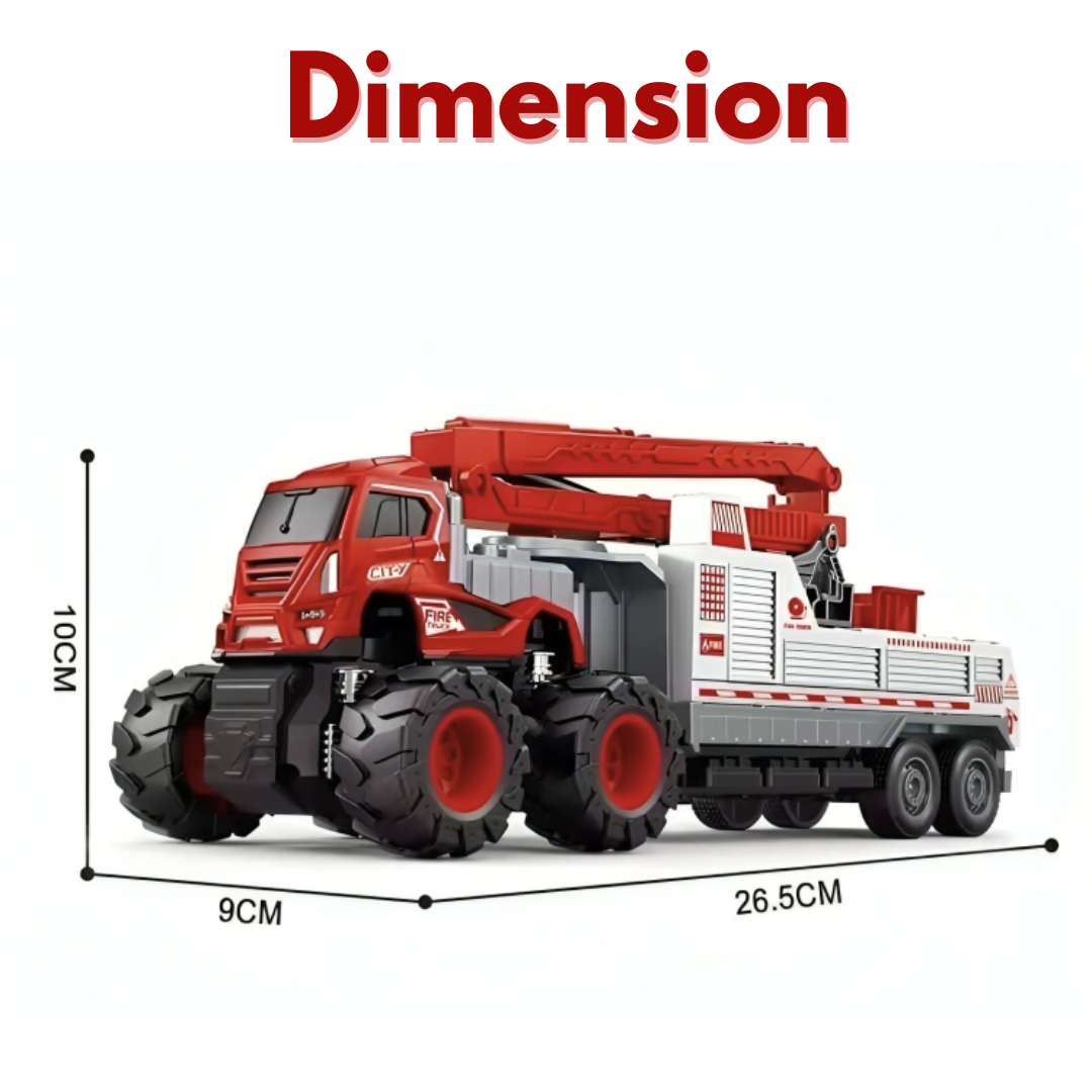 ToyBharat ABS Monster carrier truck fire Toy set with friction-powered cars, flashing lights, and music. A fun and educational emergency vehicle toy for boys and girls age 3+, ideal for birthdays and learning play.