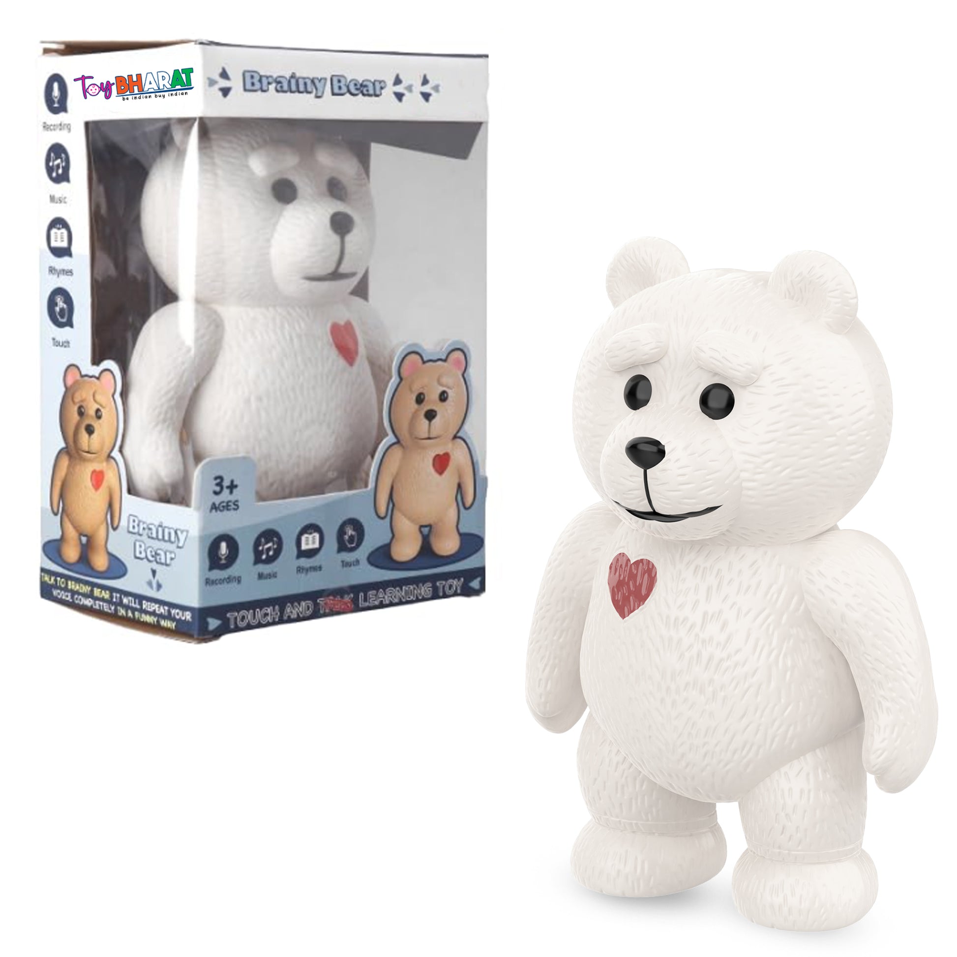 ToyBharat Talking Brainy Bear is a fun, interactive electronic pet toy for kids with music, voice repeating, and talking features. A multicolour battery-operated toy and perfect gift for kids aged 3+.