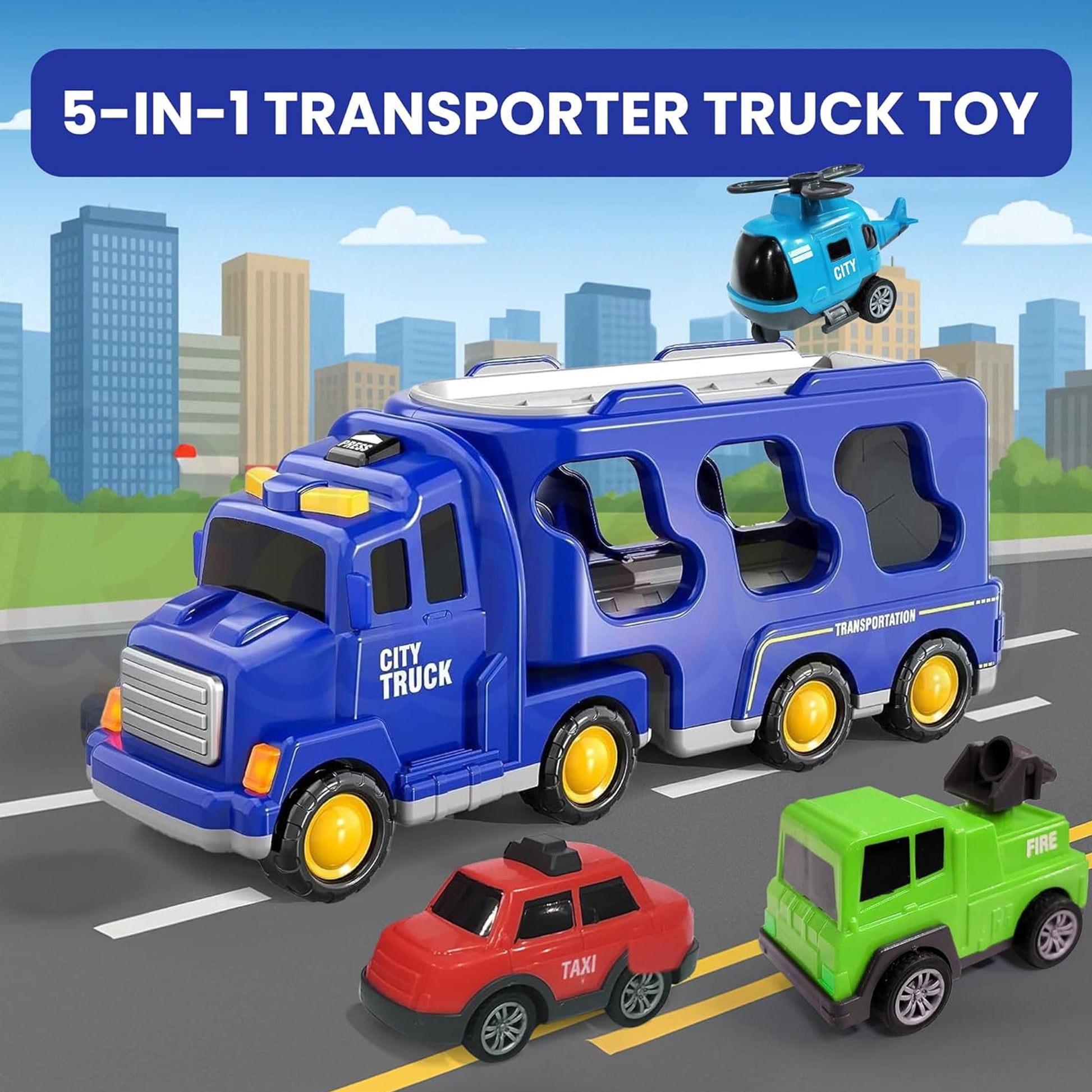 Toybharat City Transporter Carrier Truck | Multicolor | Interactive Toys |Battery Operated Light And Sound Effect Truck for Kids Gift