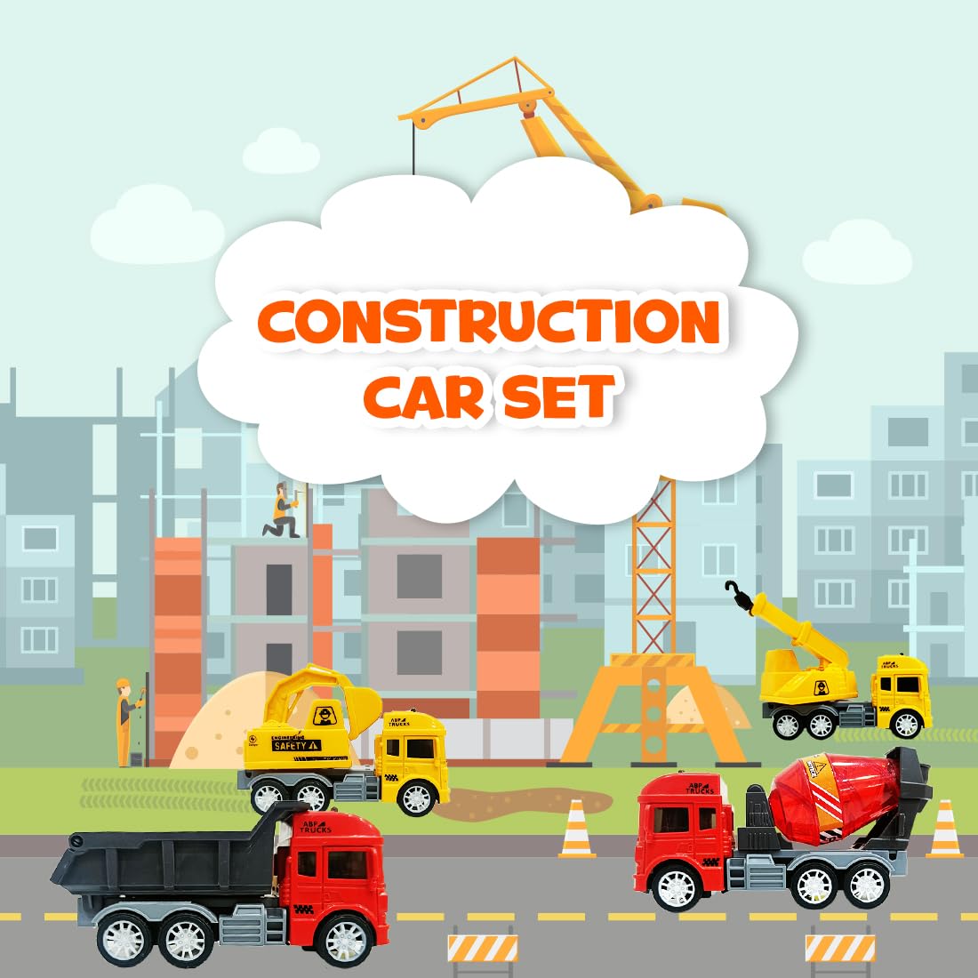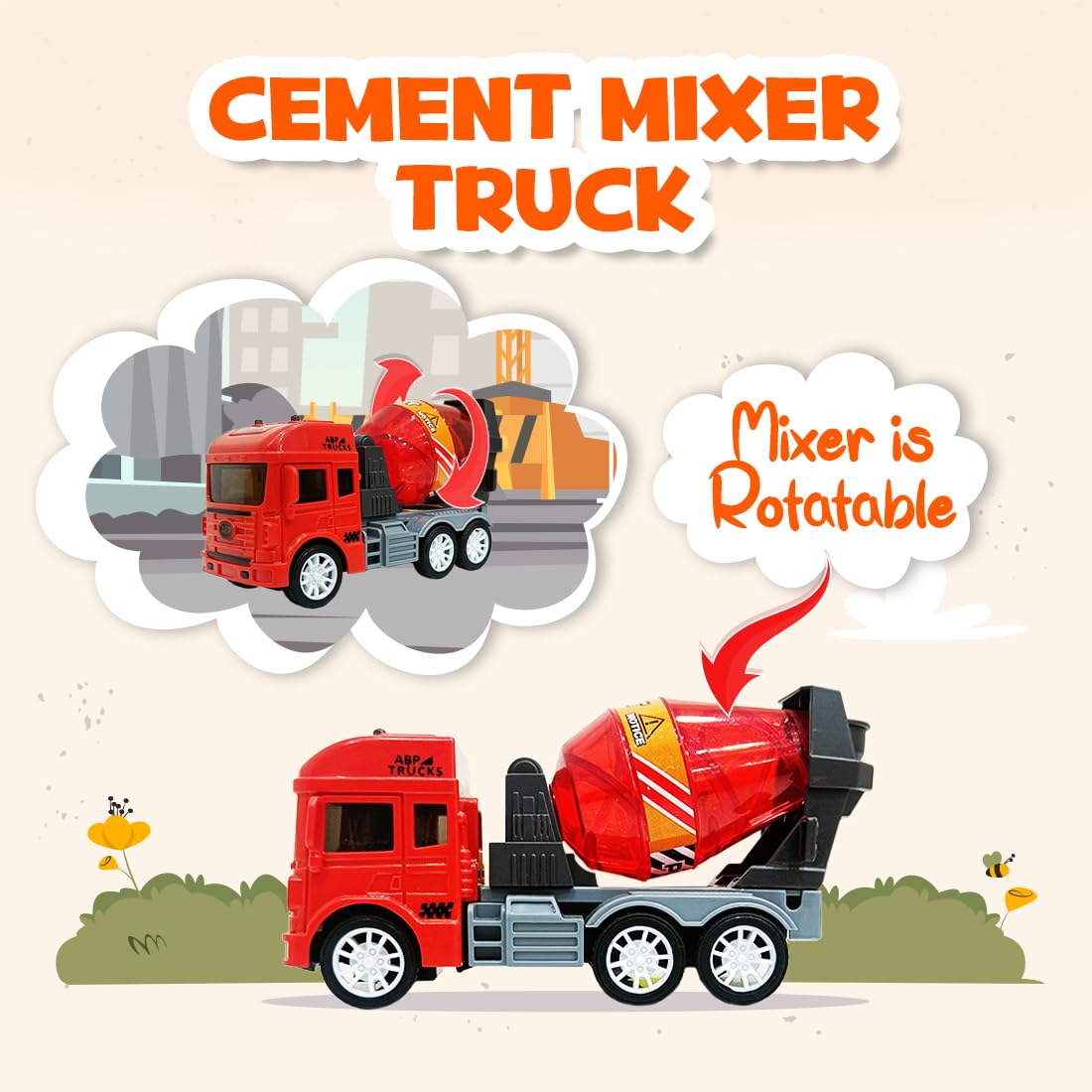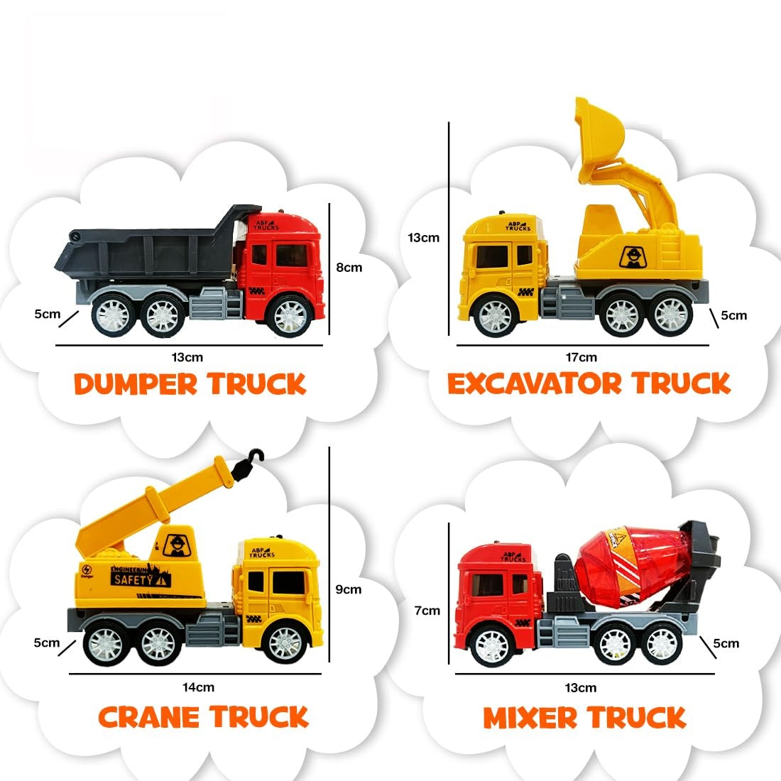 ToyBharat Contruction Truck Set Friction Powered Cars Construction Cement Mixer Truck Dumper Excavator Truck Toys for 1 2 3 Year Old Boy Girl Baby Kids, Pack of 4