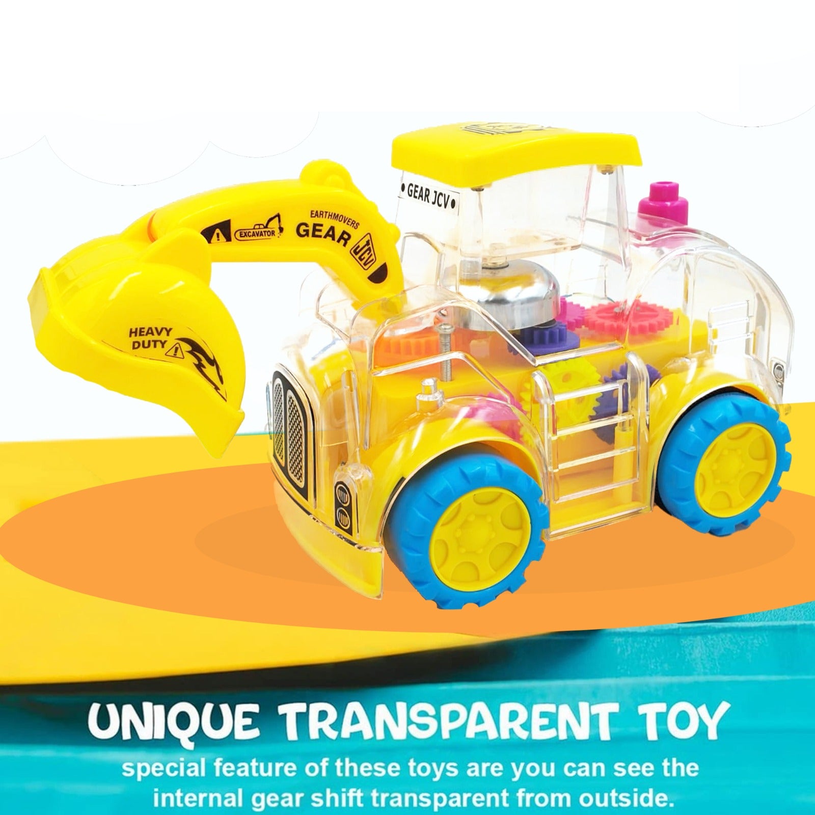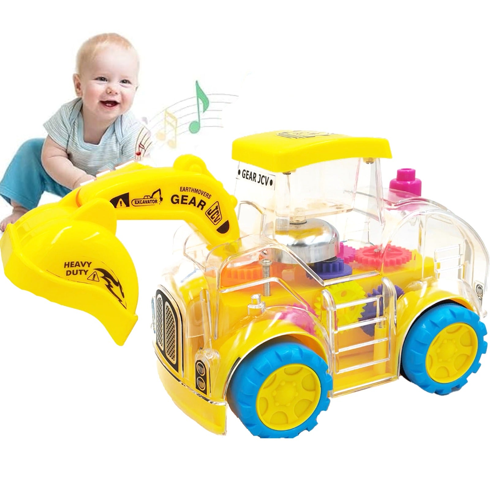 ToyBharat The Gear JCV Friction Power Toy features bright colors, smooth motion, and a bell sound that rings as it moves. No batteries needed! Perfect for kids aged 1 to 6 who love construction vehicles.
