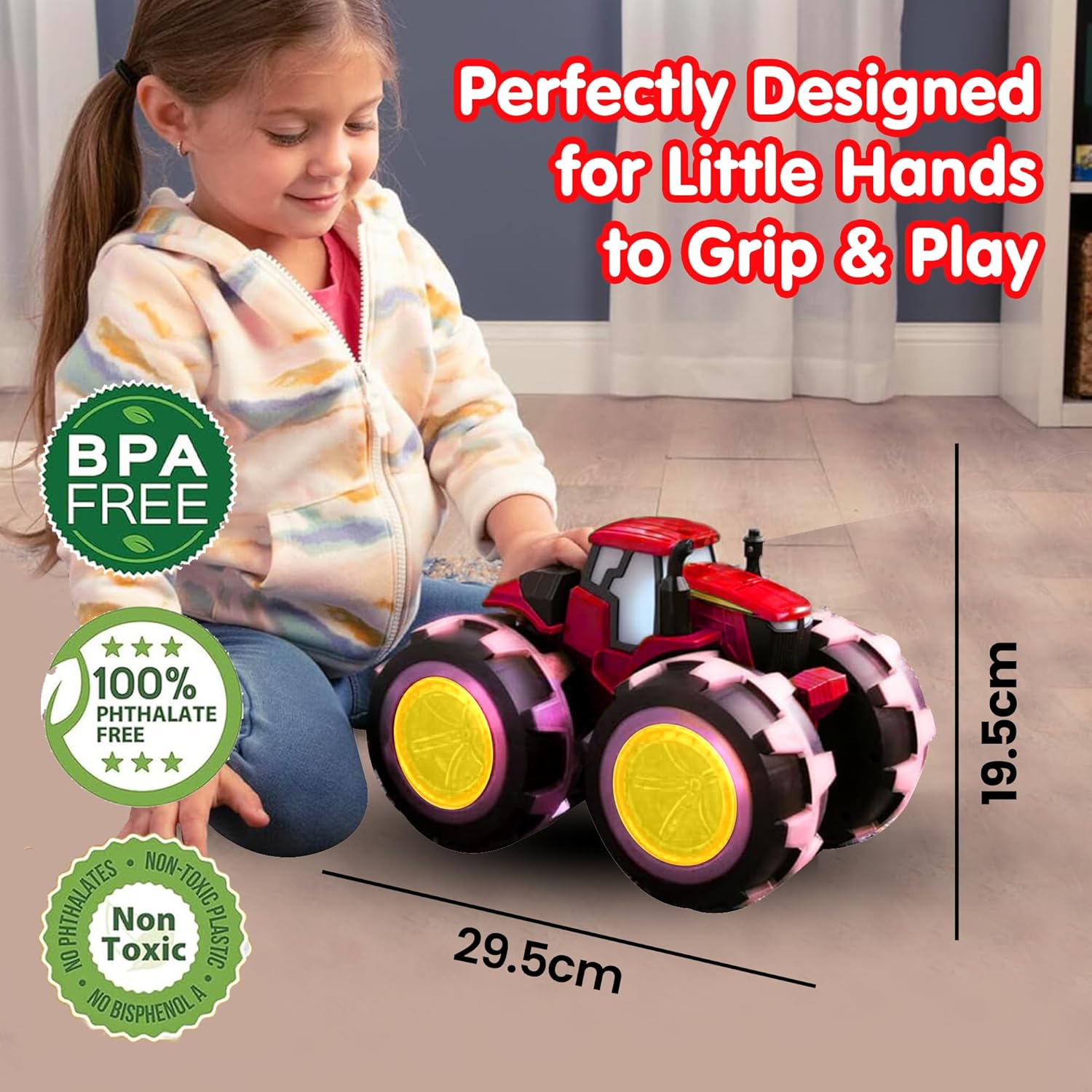 ToyBharat Cuppy Friction Powered Big Tractor Toy for Kids | Push and Go Farm Truck with Rugged All-Terrain Wheels | Colorful Lights in Motion | Durable Farm Vehicle Toy for Boys and Girls 6 Months+