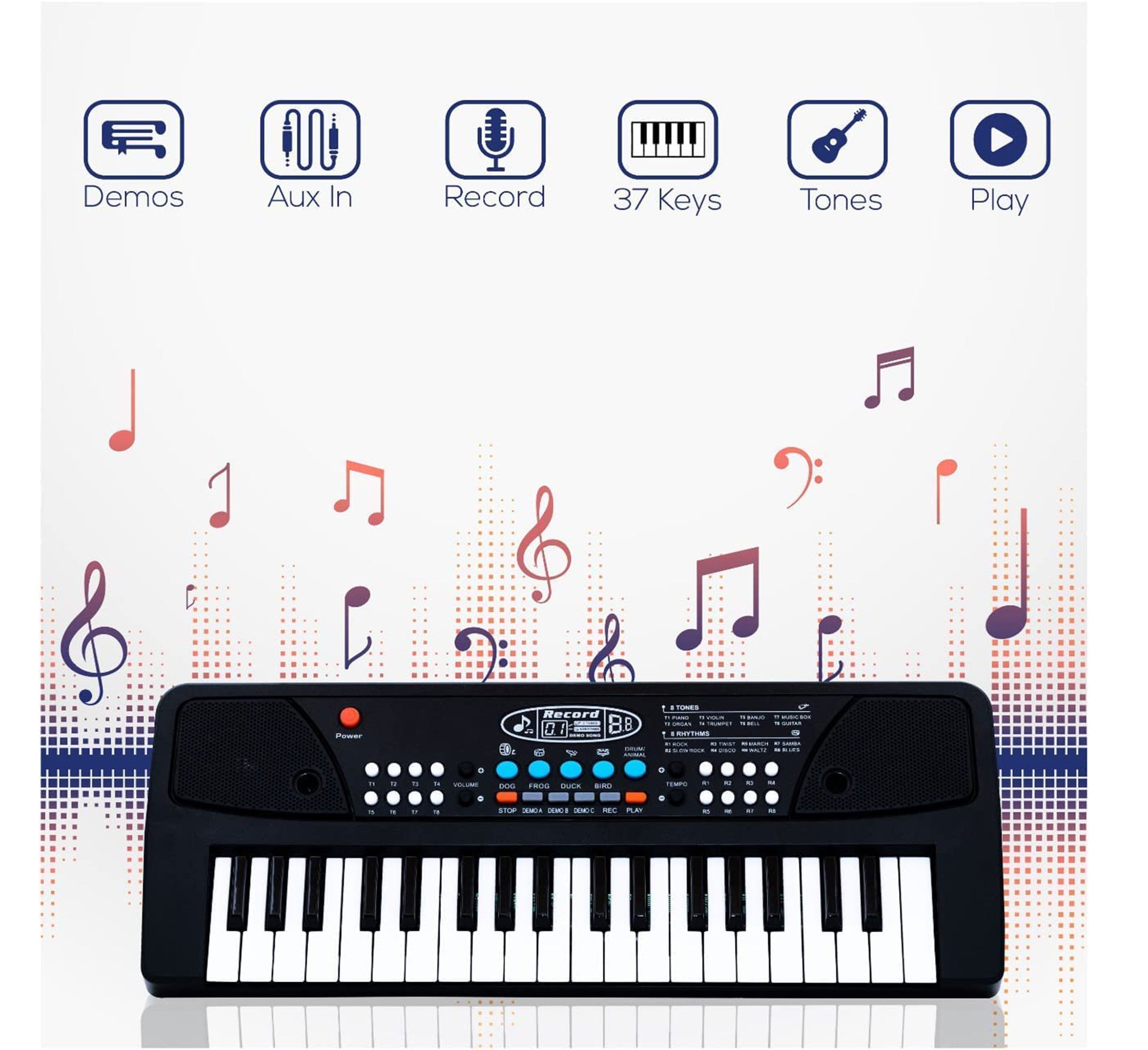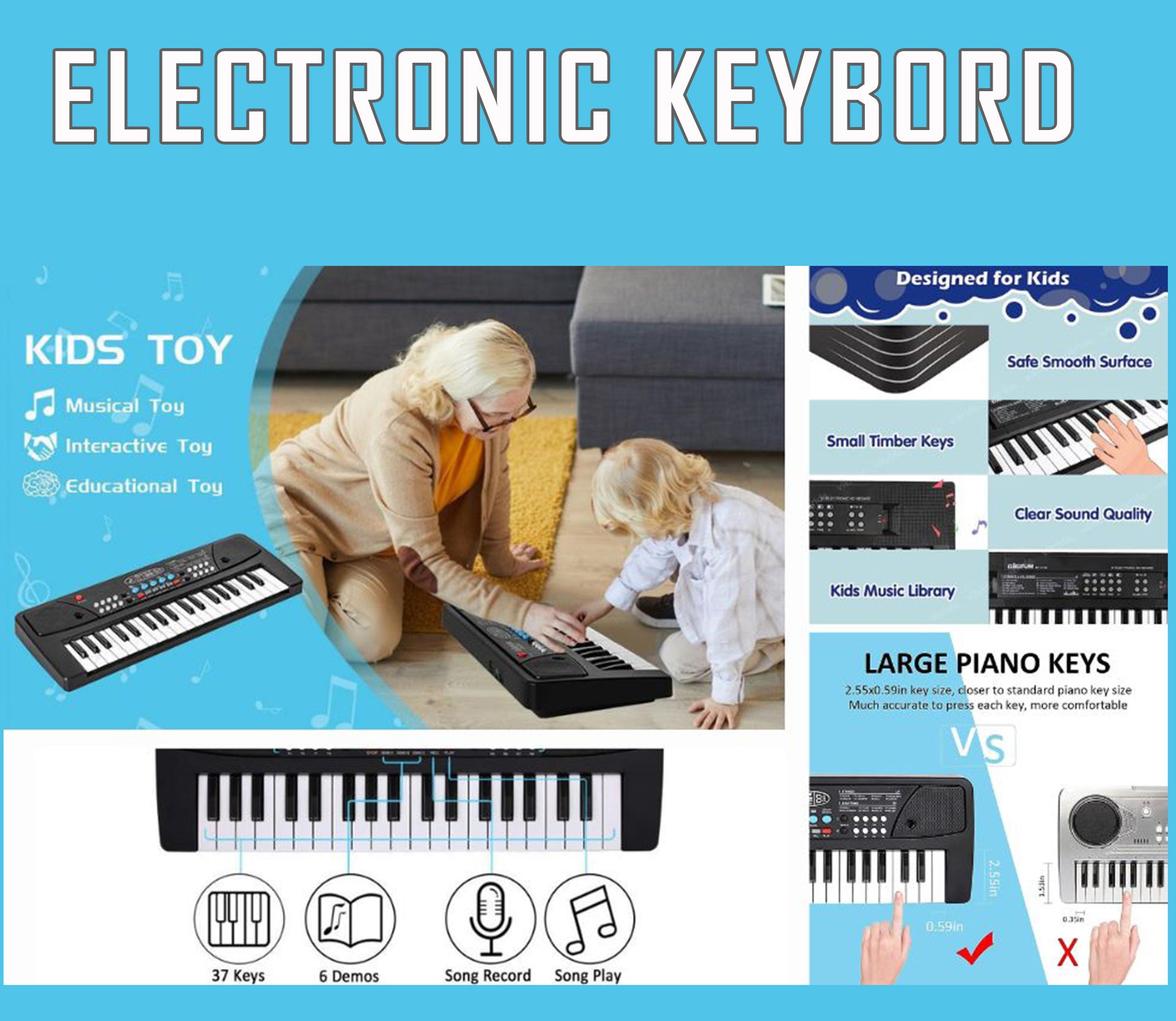 ToyBharat 37-key Electronic Keyboard Piano for kids with microphone, music functions, and learning modes. A perfect musical toy for girls and boys aged 3–12, ideal for beginners and early musical education.