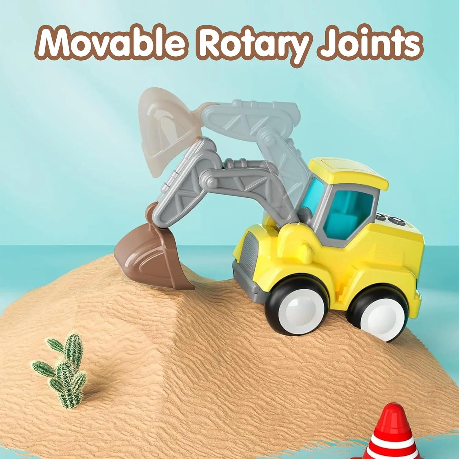 ToyBharat Pressing n go JCB Toys Pack Of 4- for Toddlers, Press & Go Truck Toy with Flexible Joints, Fun Car Set for 1+ Year Old Boys & Girls, Birthday Gift for Kids