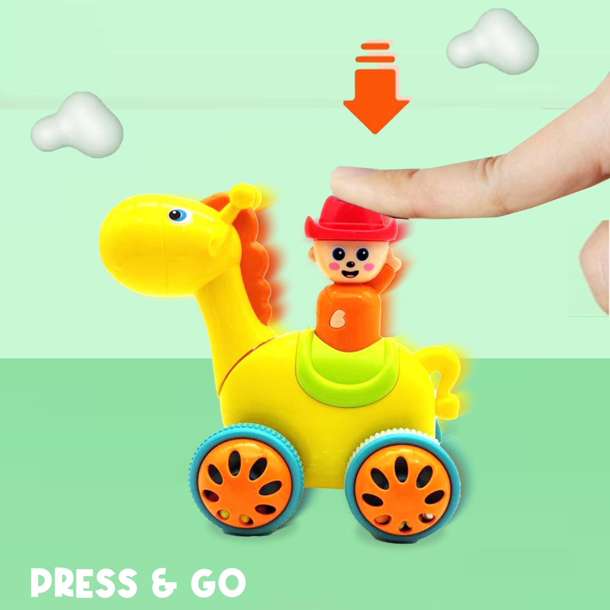 ToyBharat Press N Go Horse is a multicolour travel toy with a realistic design, perfect for kids aged 1–6 years. Safe, non-toxic, and durable, it's ideal for indoor and outdoor play and makes a great birthday gift.