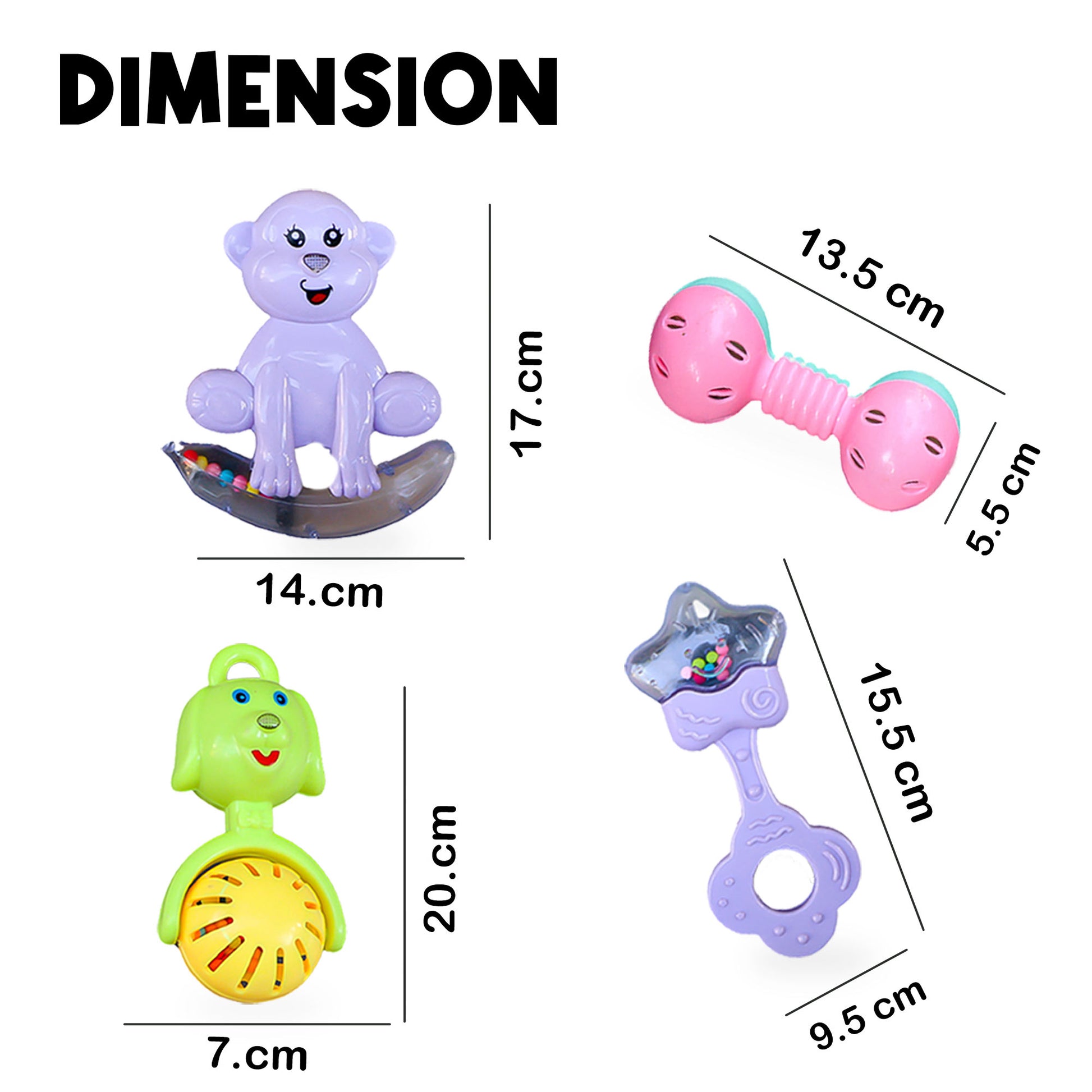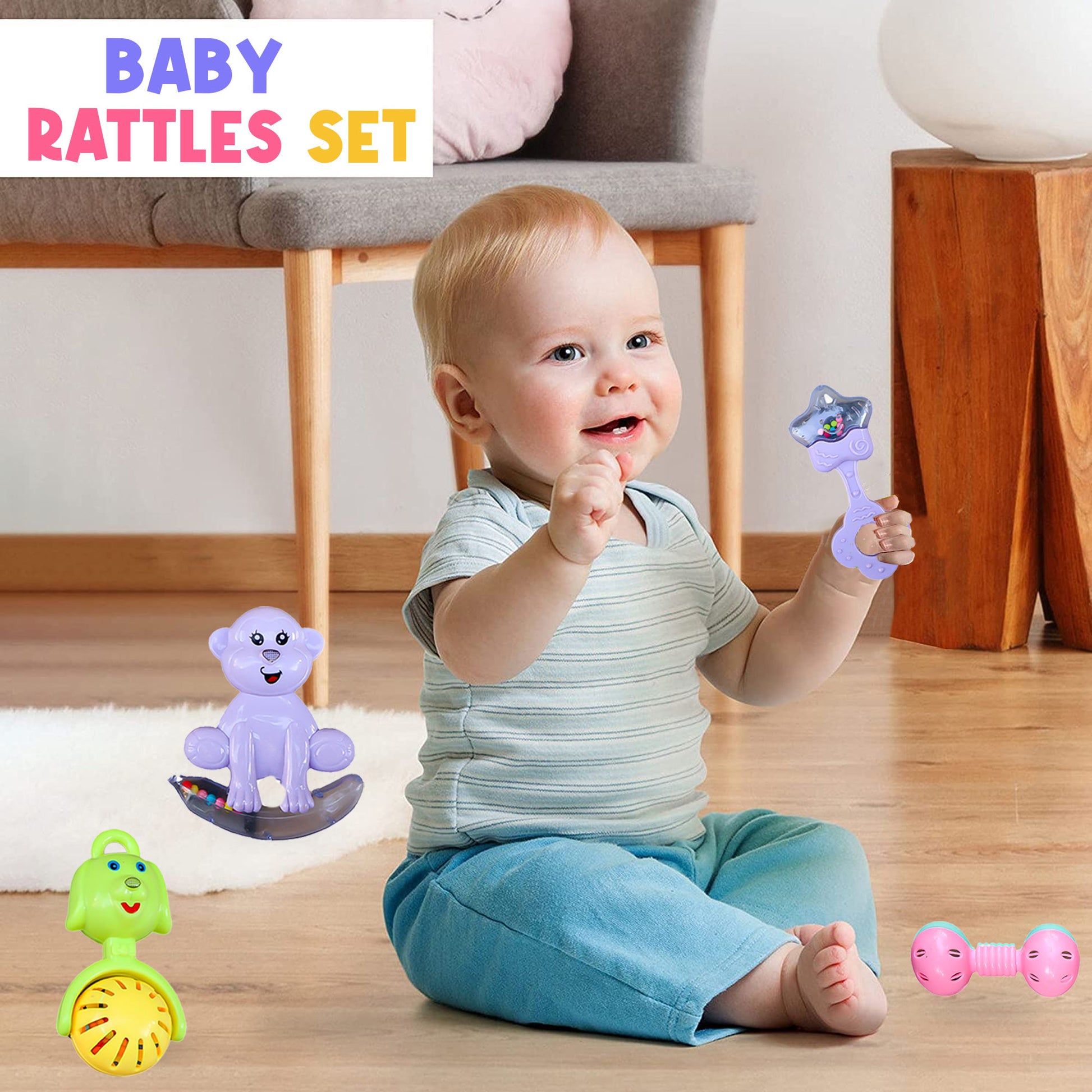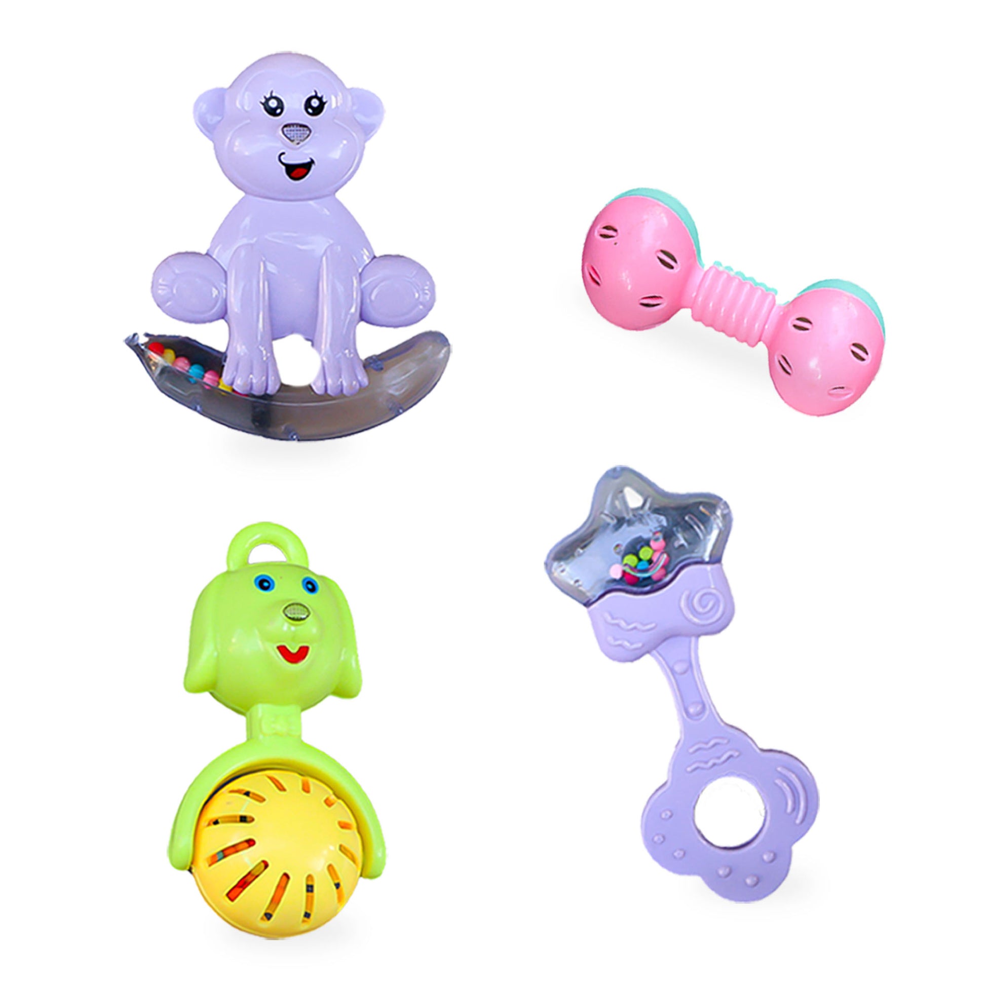 ToyBharat Baby Rattle Set – 4 Colorful Toys (Monkey, Ring, Dog, Crab,) | Safe, Sound-Making & Easy to Carry | Made in India | For Toddlers (1-6 Years) | Multicolour