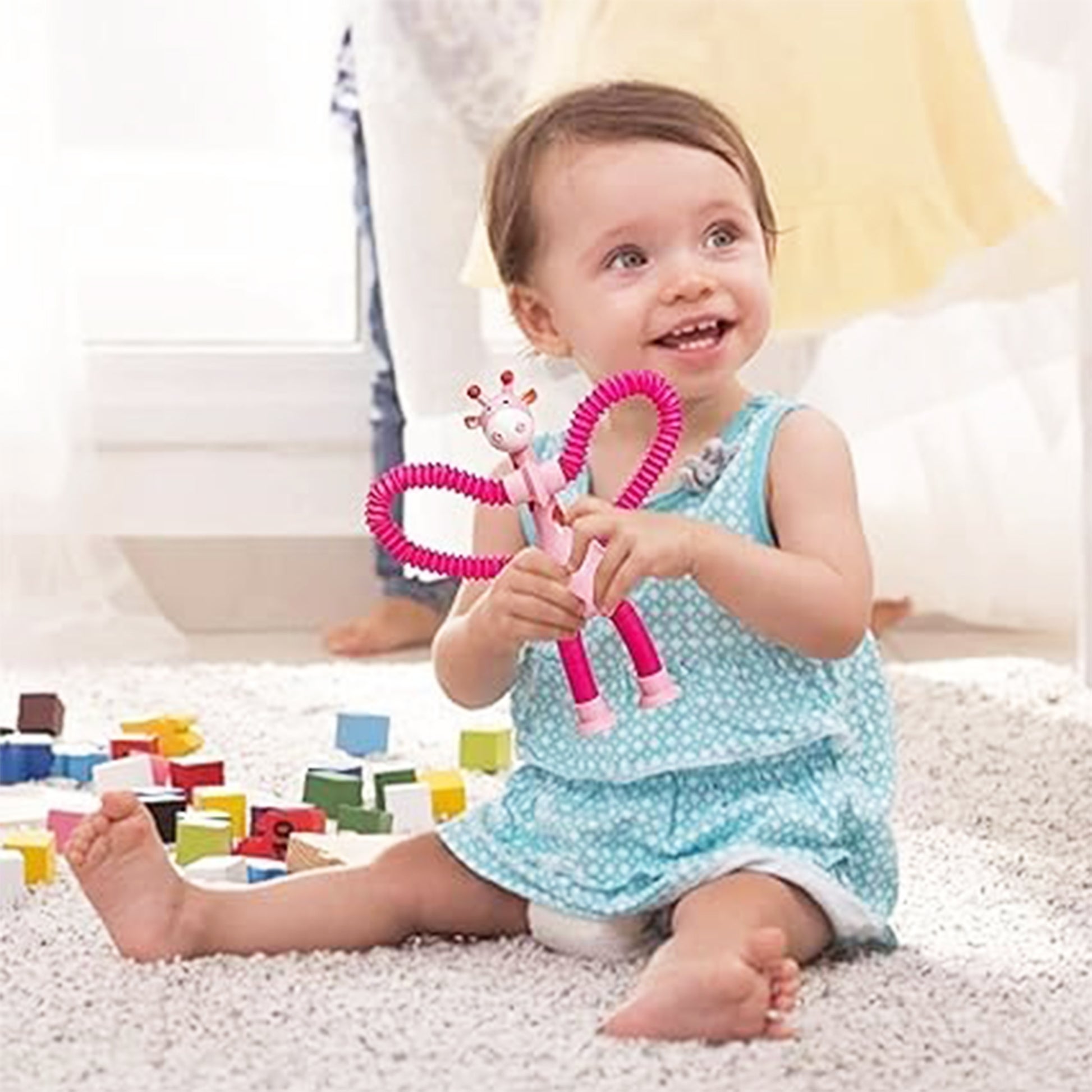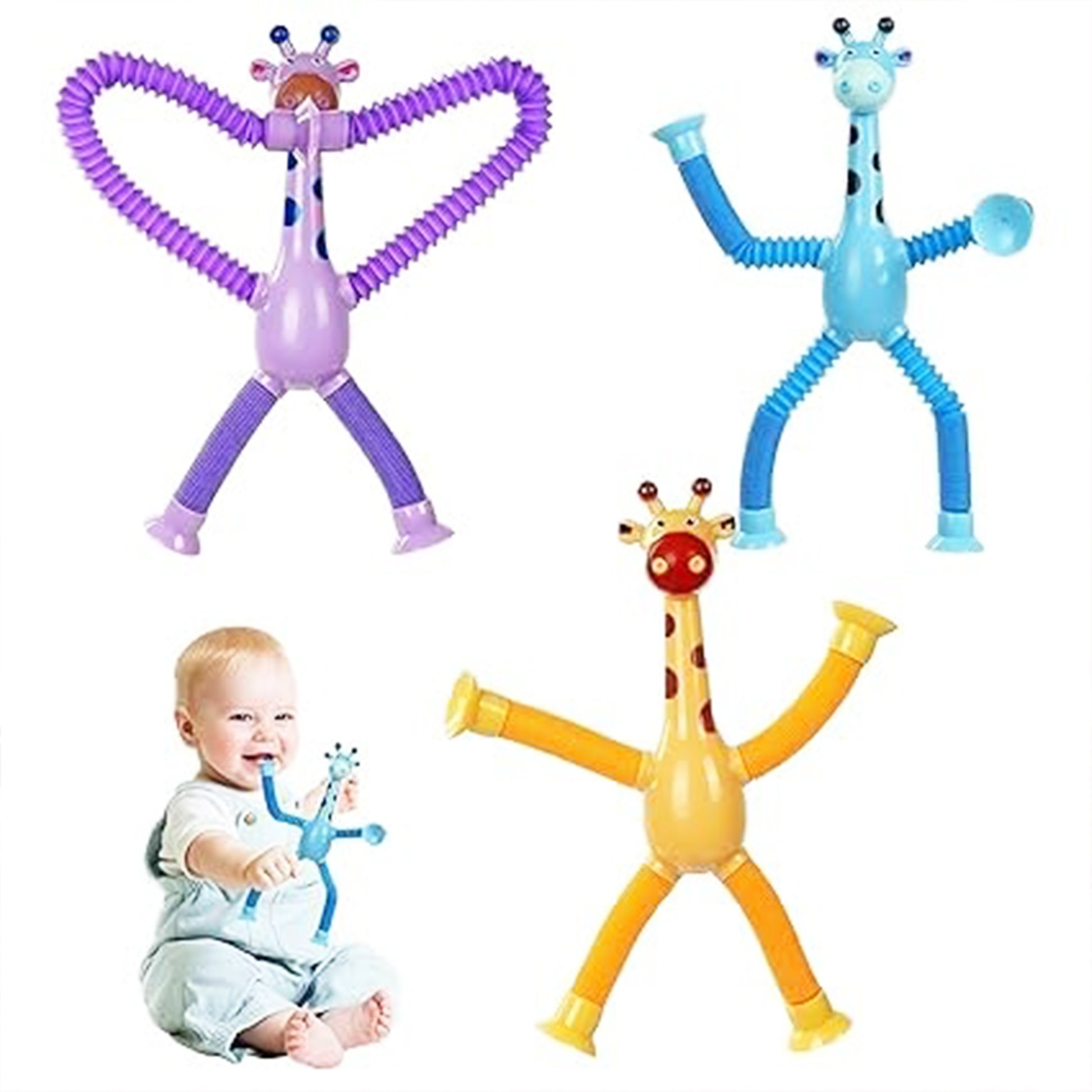 ToyBharat This Giraffe-Shaped Telescopic Suction Toy (Set of 1) is a fun, stretchy travel essential for toddlers. Safe, colorful, and easy to use—ideal for kids aged 1+ during flights, car rides, or at home.