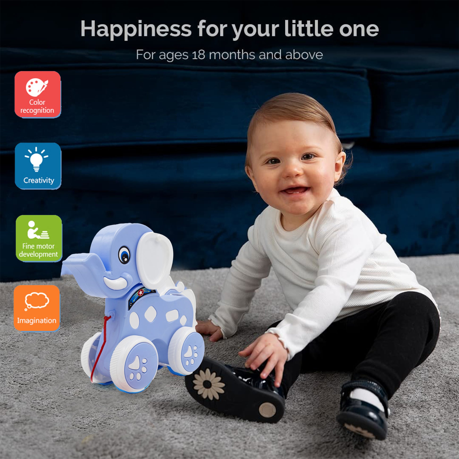 Pull Along with being adored by toddlers because of their simplicity, pull toys help toddlers learn cause and effect relationship too. They succeed in providing entertainment and help your toddler learn important scientific concepts, all through fun and play. QUALITY CONSTRUCTION: This animal pull toy made of Contrast-colored solid Plastic. This toy can help toddlers to walk with this toy. High-quality construction ensures durability to withstand energetic play in a home or school environment. FUN AND EDUCATIONAL: Having this toy in your house will encourage the development of your child's motor skills, coordination, and balance. Babies will love this vivid colors and the detailed design of this toy