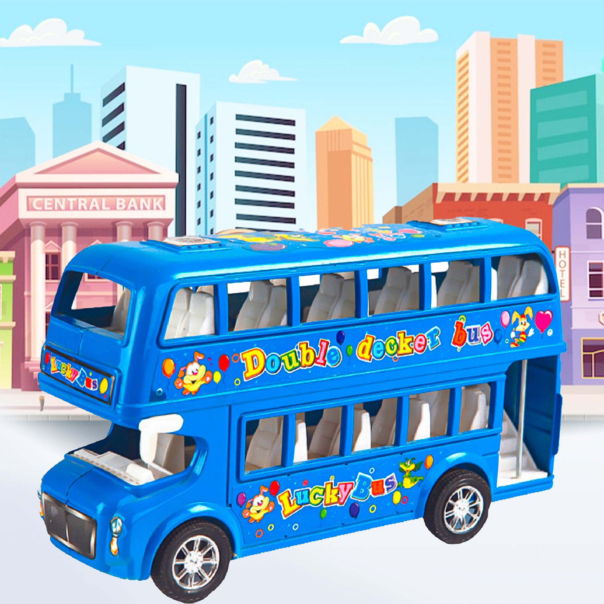 Imaginative Play: This toy encourages creativity and imaginative play as children pretend to drive the bus, pick up passengers, and explore the city.