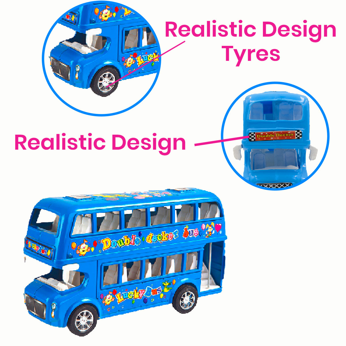 ToyBharat Double Decker Bus Friction Power Toy in Multicolour with Realistic Design is a perfect Kids Gift for ages 1-6 Years. Safe, Non-Toxic, Battery-Free, great for Indoor and Outdoor Play adventures.