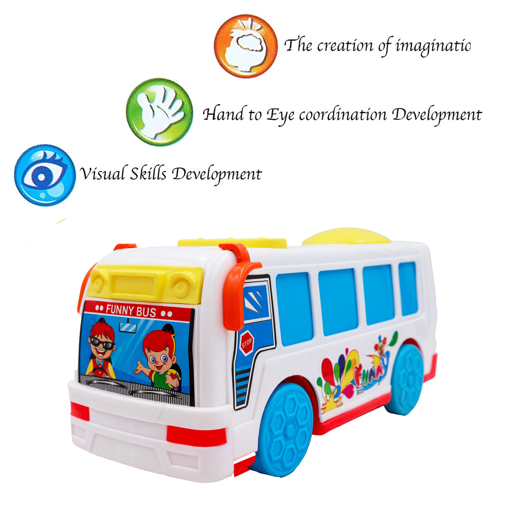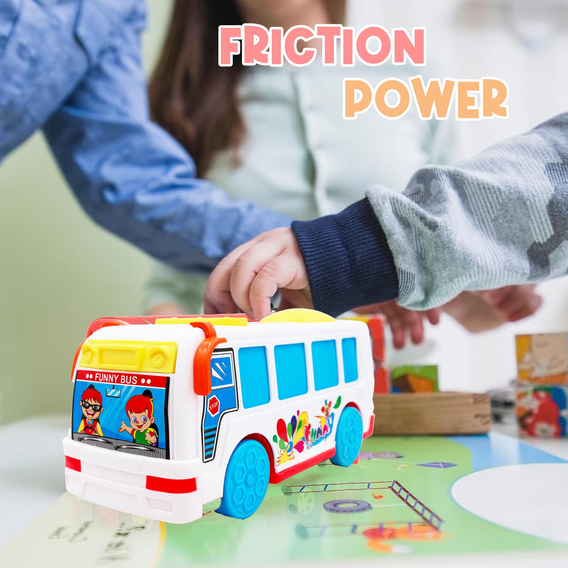 ToyBharat Funny Bus Friction Toy in Multicolour with Realistic Design is the perfect Travel Toy and Birthday Gift for Kids aged 1-6 Years. Safe, Non-Toxic, Battery-Free, ideal for Indoor and Outdoor Play.
