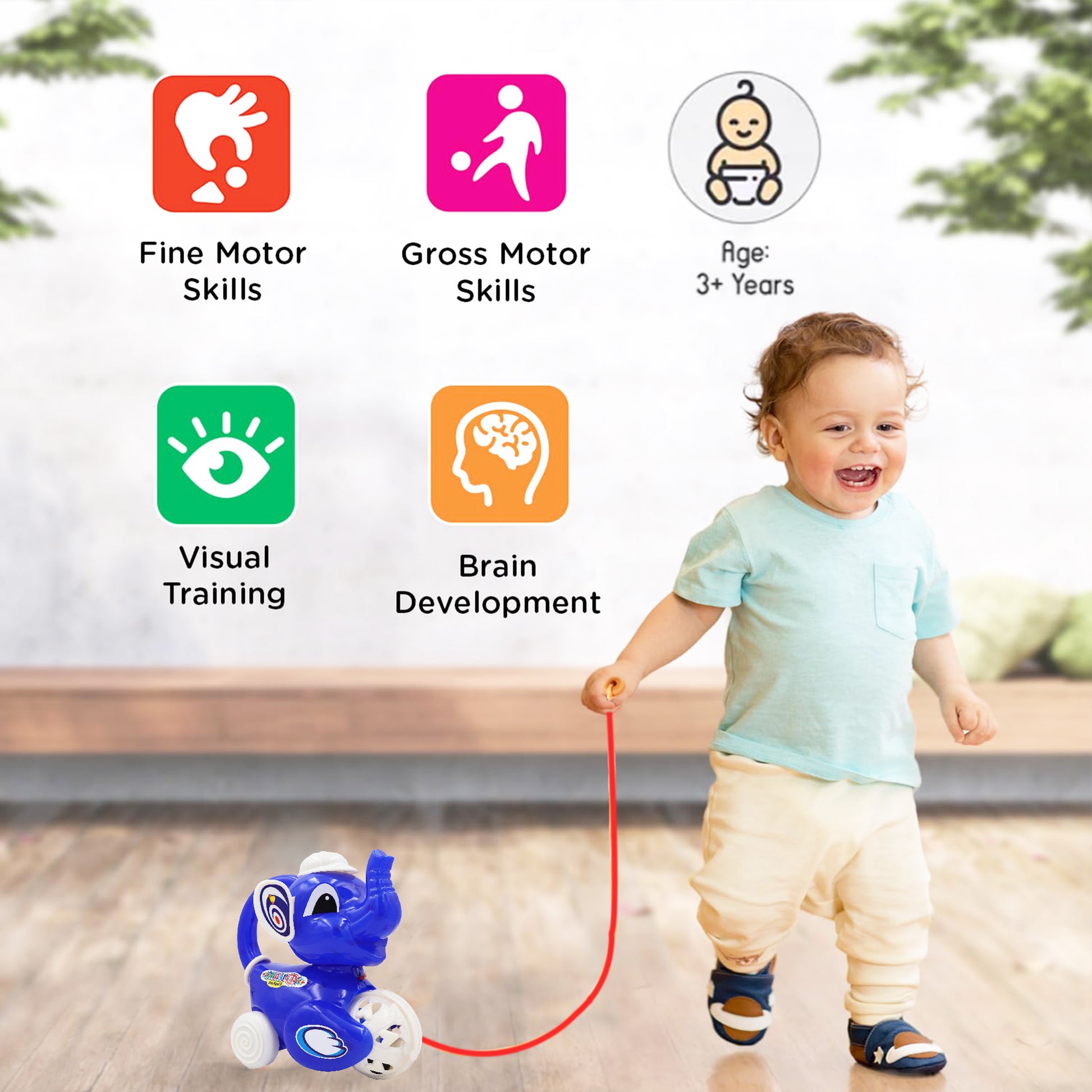 Pull Along with being adored by toddlers because of their simplicity, pull toys help toddlers learn cause and effect relationship too. They succeed in providing entertainment and help your toddler learn important scientific concepts, all through fun and play. QUALITY CONSTRUCTION: This animal pull toy made of Contrast-colored solid Plastic. This toy can help toddlers to walk with this toy. High-quality construction ensures durability to withstand energetic play in a home or school environment. FUN AND EDUCATIONAL: Having this toy in your house will encourage the development of your child's motor skills, coordination, and balance. Babies will love this vivid colors and the detailed design of this toy