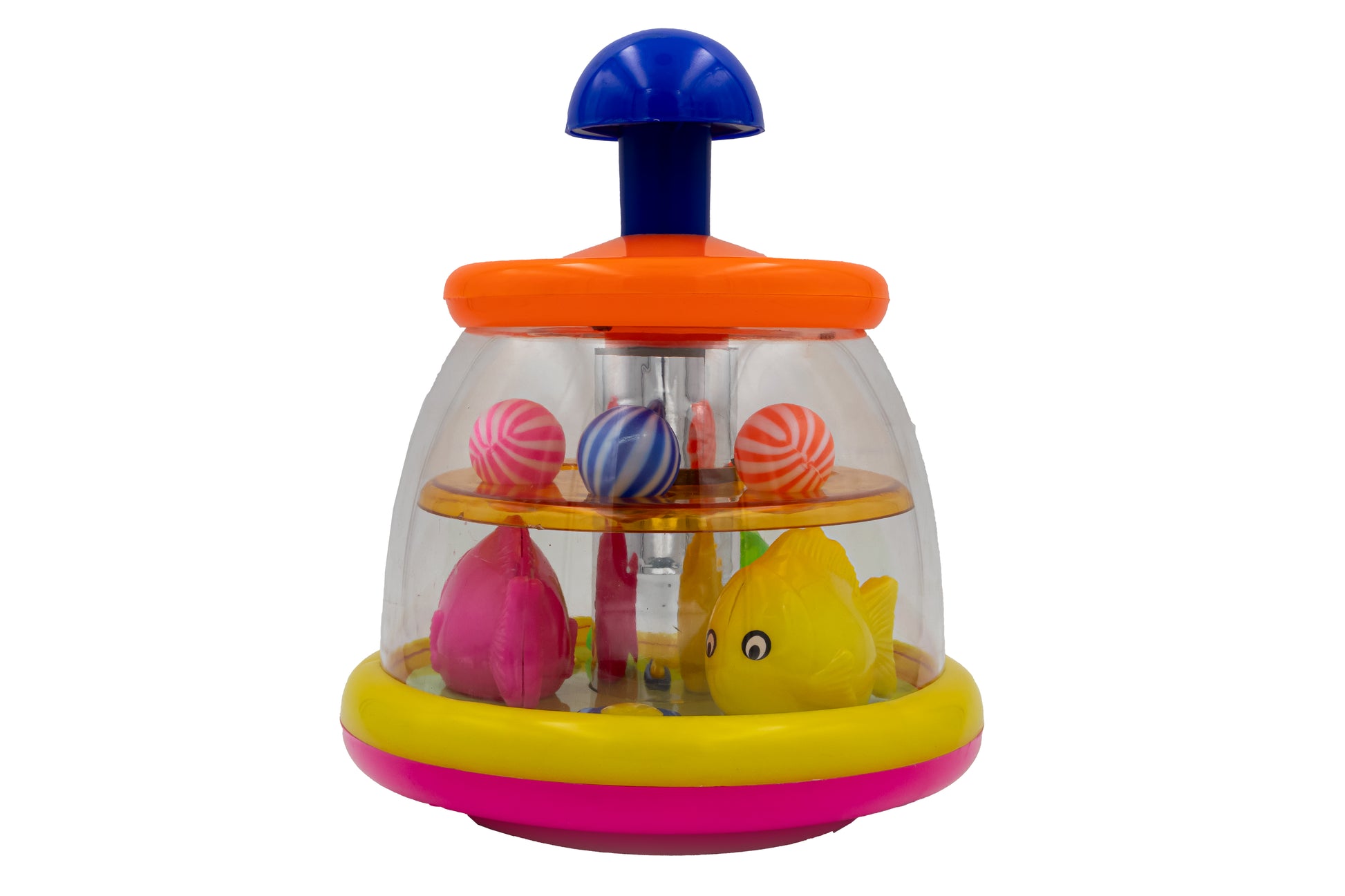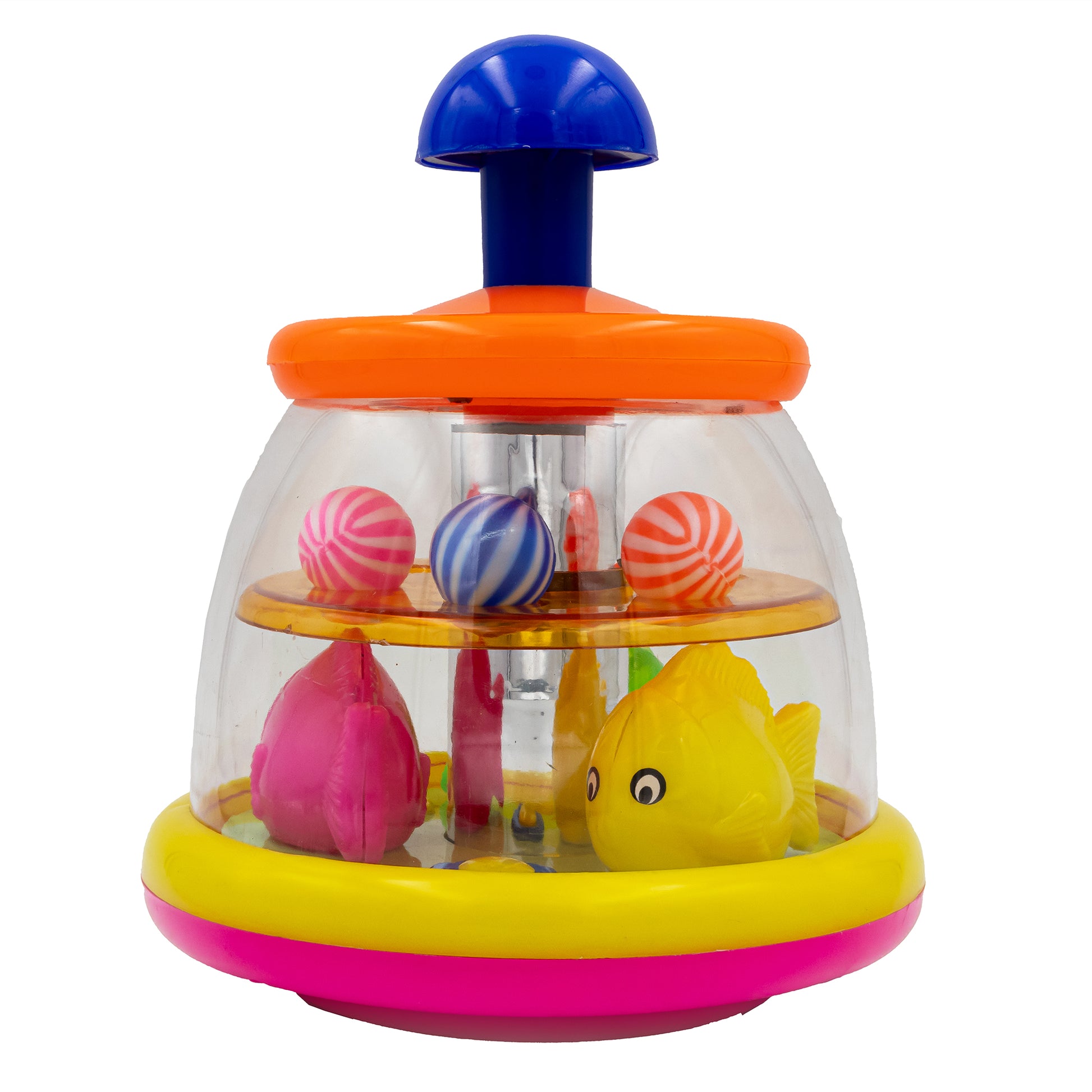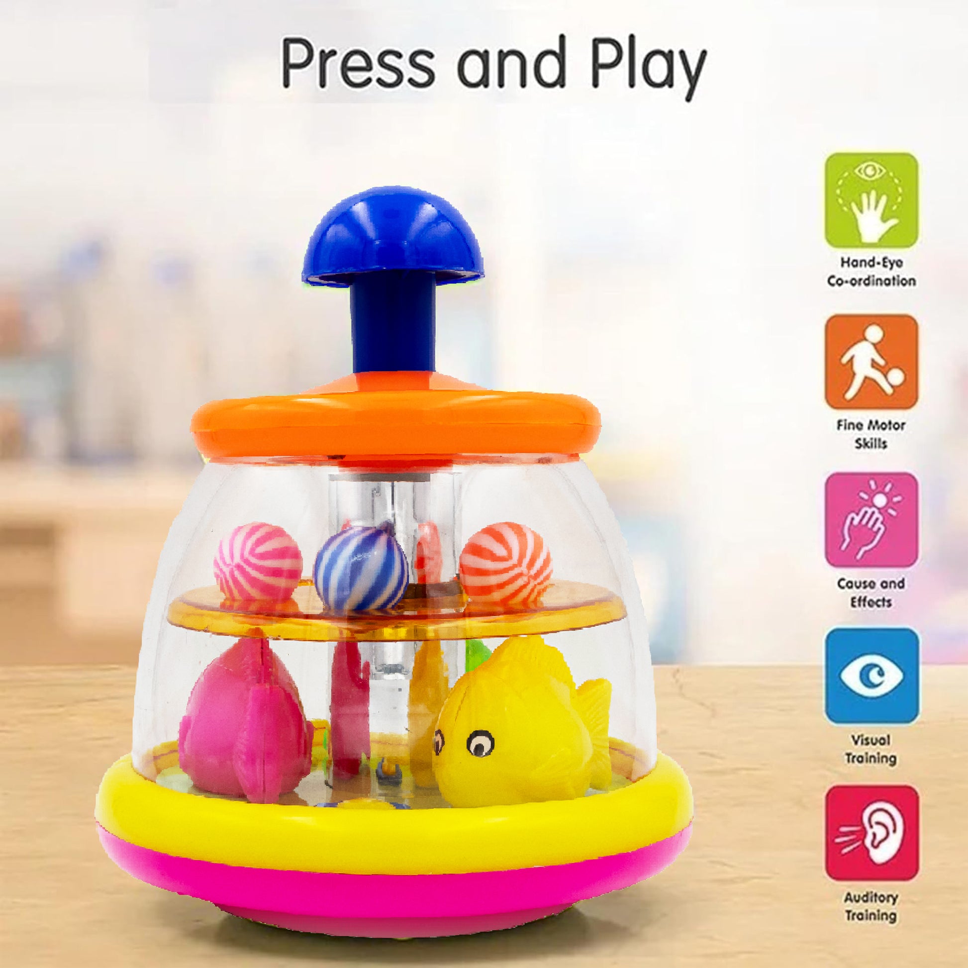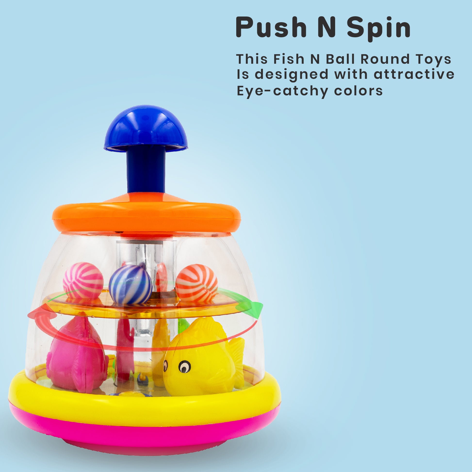 ToyBharat Push & Spin Fish & Ball Toy features a musical spinner with colorful fish and light-up balls. A multicolour interactive toy for toddlers that promotes learning through music, motion, and bright visuals.