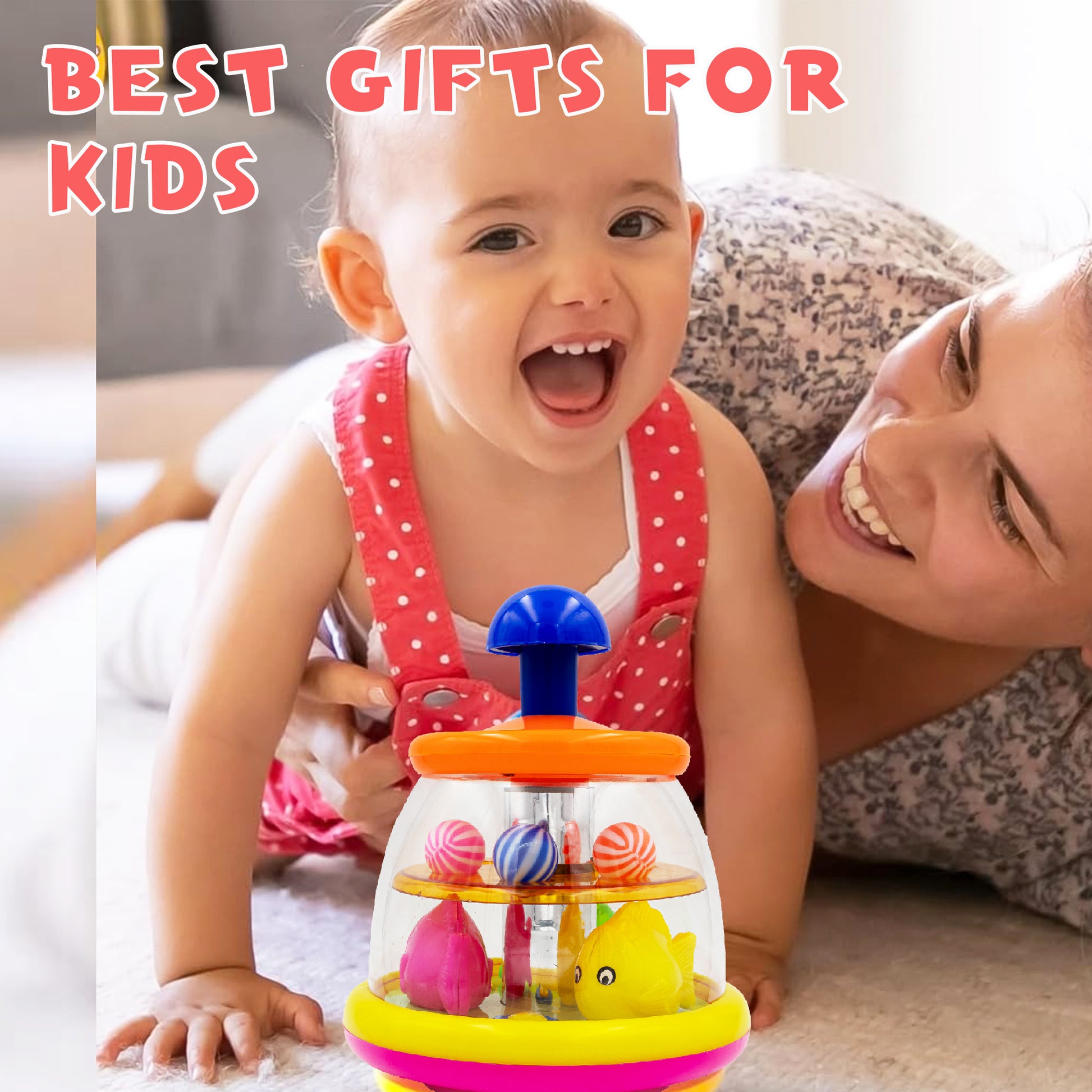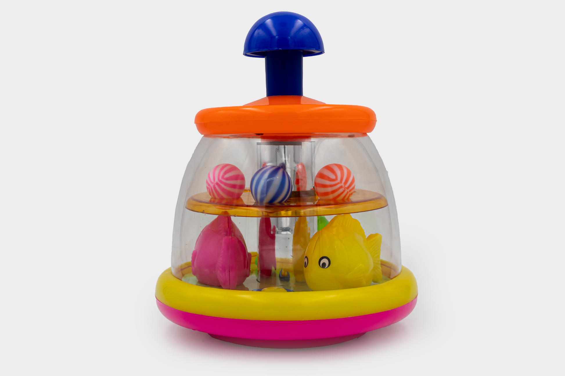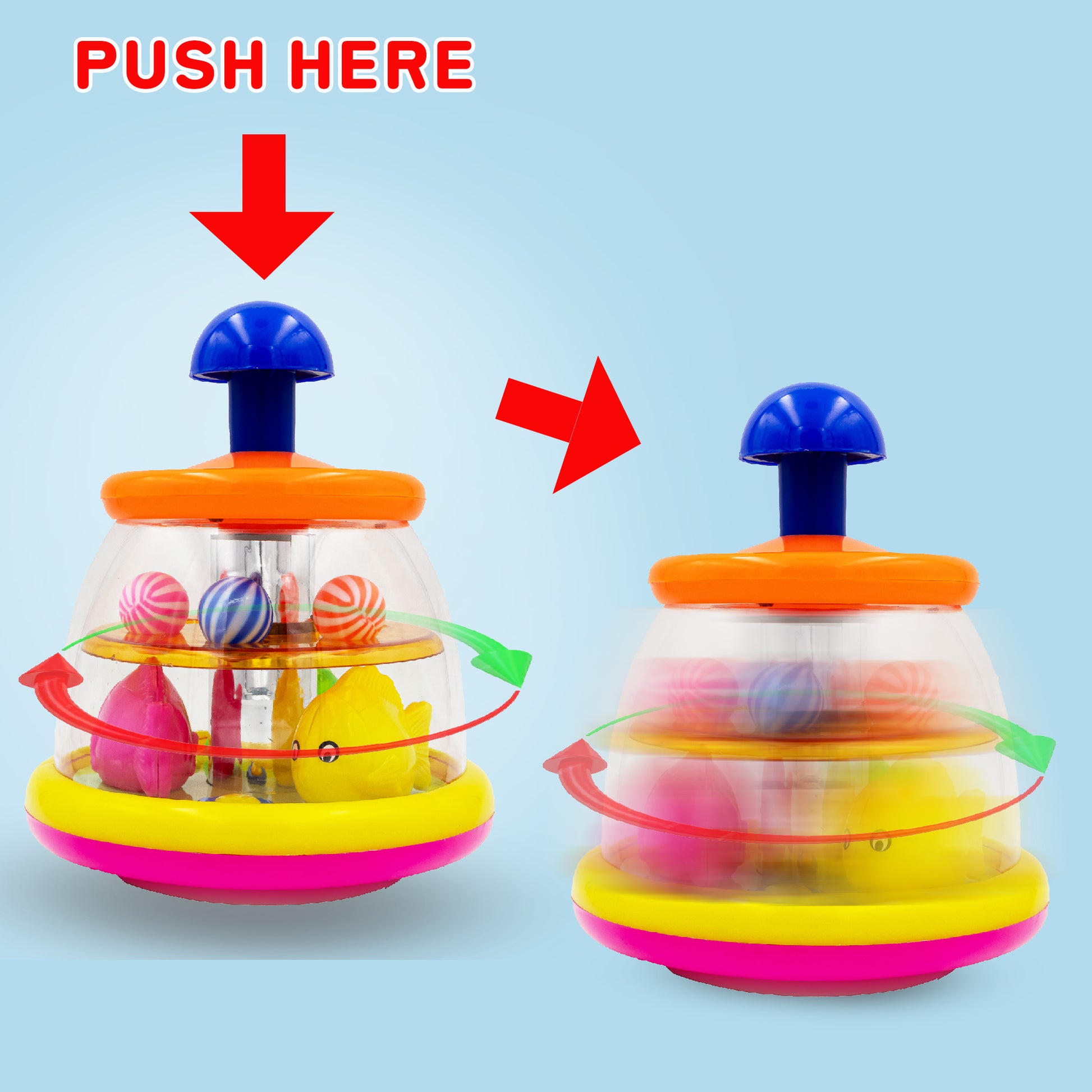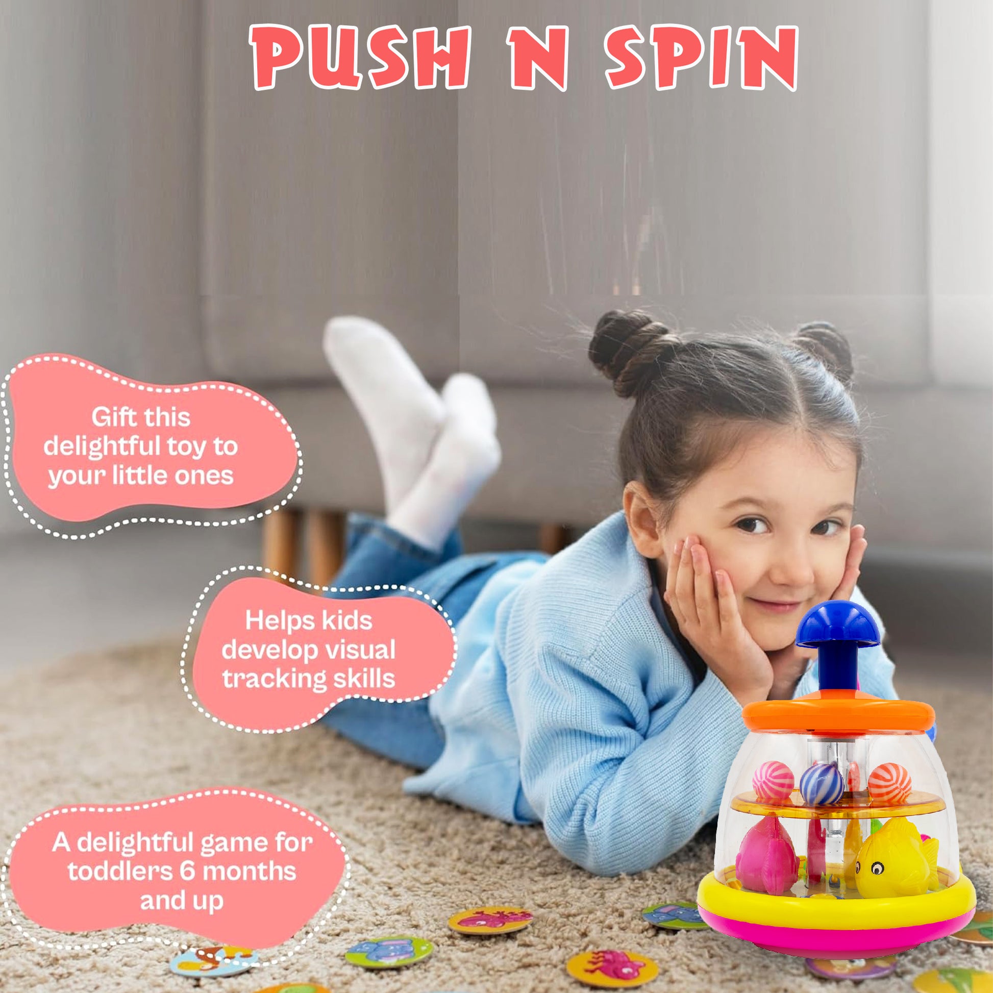 ToyBharat Push & Spin Fish & Ball Toy features a musical spinner with colorful fish and light-up balls. A multicolour interactive toy for toddlers that promotes learning through music, motion, and bright visuals.
