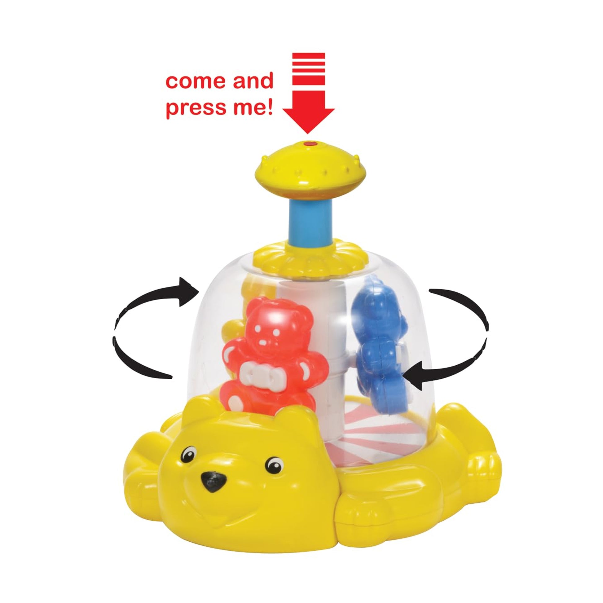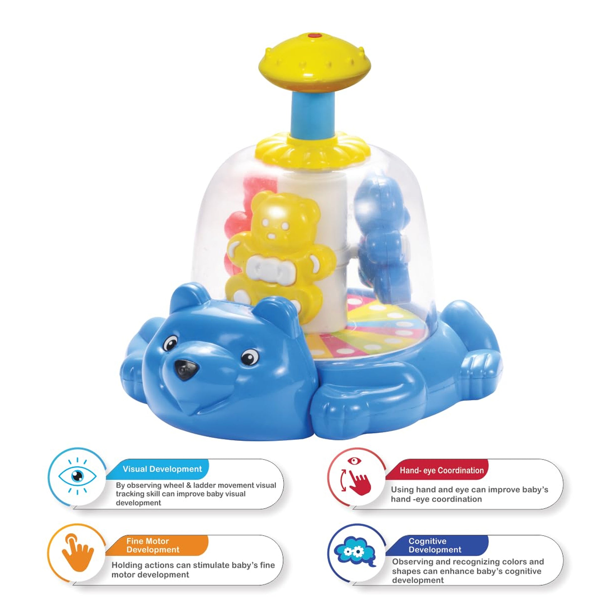 ToyBharat Push N Spin Teddy Family is a multicolour interactive toy that spins with a simple push. A perfect birthday gift for kids aged 1-6, it promotes motor skills, learning, and safe indoor or outdoor play.